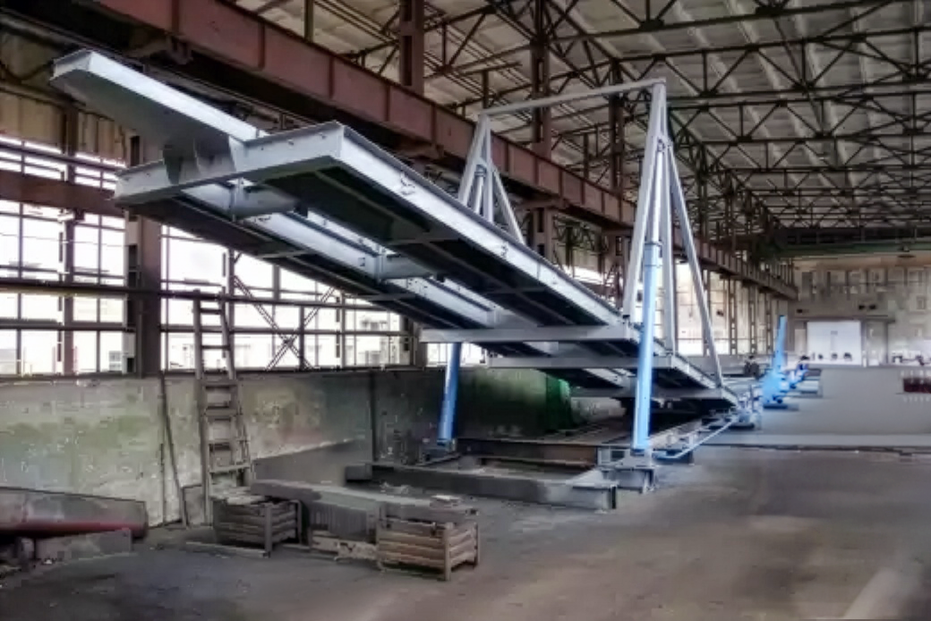 - Поворот платформы осуществляется с помощью телескопических гидродомкратов.
