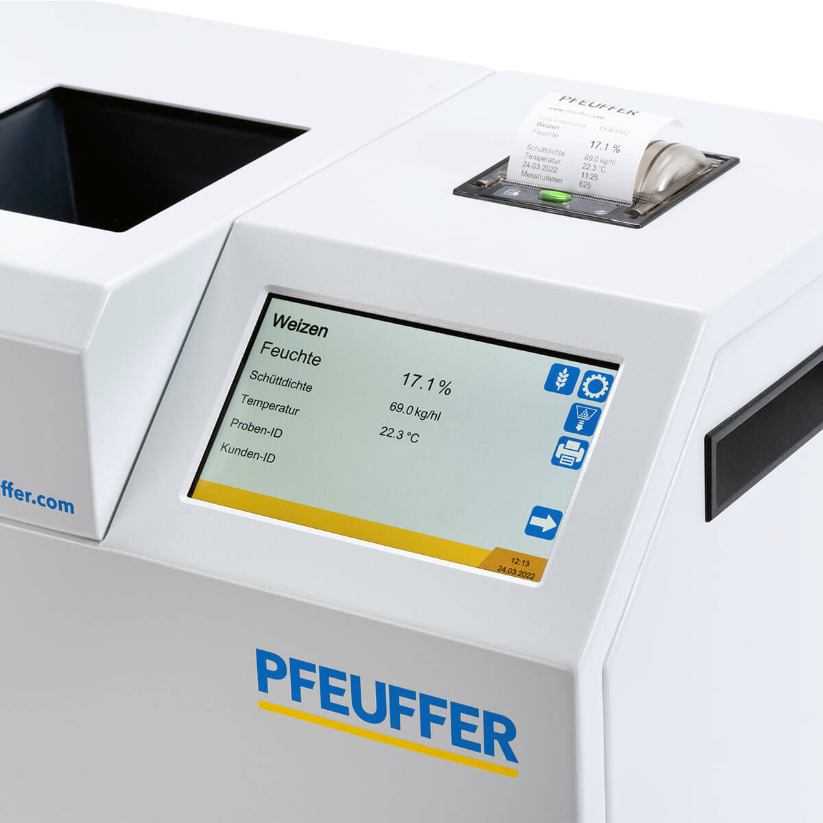 Прибор подключается к сети и оснащён двумя USB-портами для подключения сканера штрих-кодов, клавиатуры или накопителя. Через настольное приложение Pfeuffer DataGateway данные можно сохранять, обрабатывать и передавать в системы управления или экспортировать в MS Excel®.