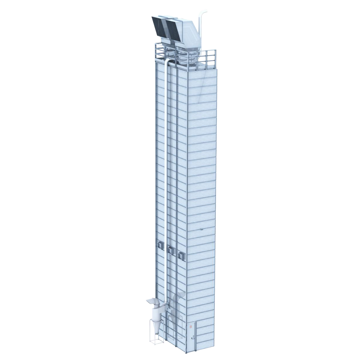 Двухзонная шахта (зона сушки и зона охлаждения) с системой инверторов и регулируемыми коробами обеспечивает равномерный прогрев и продув зернового слоя.